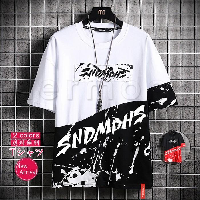 Tシャツ メンズ 半袖 英字プリント トップス 個性的 夏服 ゆったり