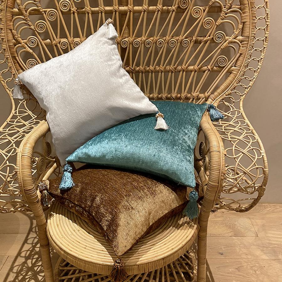 クッションカバー 45 45 タッセル 付き ベロア クッション カバー 無地