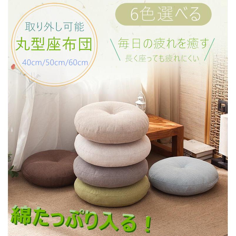 座布団 おしゃれ 円形 40 45 50 60 70 ラウンドクッション 和風 リネン