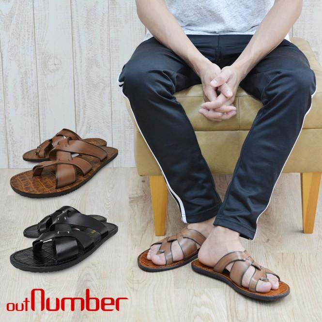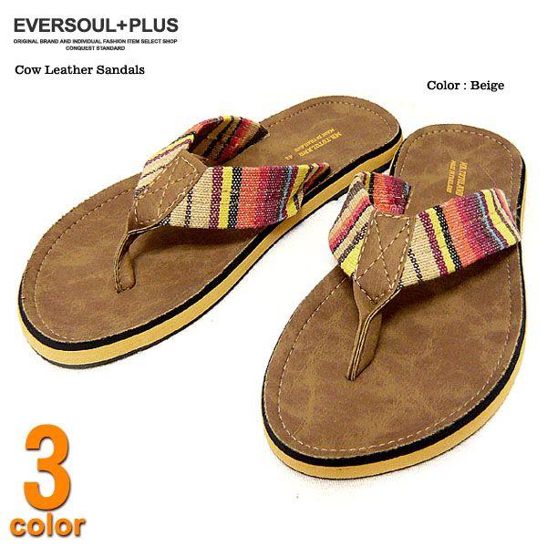 2color レザーサンダル リーフストラップ トングサンダル メンズ