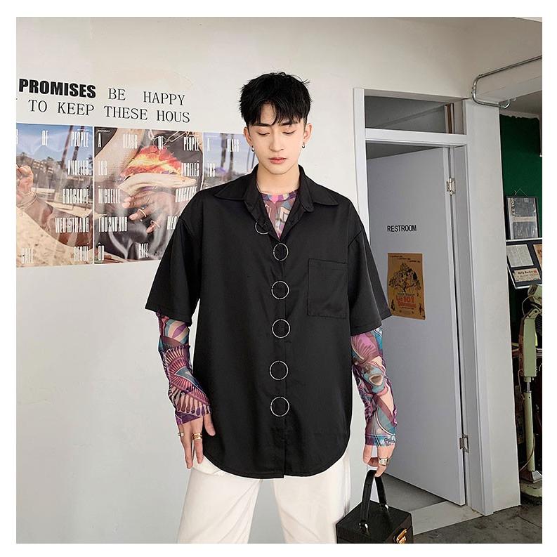 開襟シャツ 半袖 メンズ おしゃれ 半袖シャツ 夏 オープンカラーシャツ