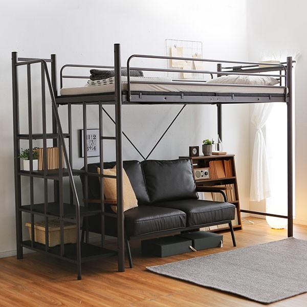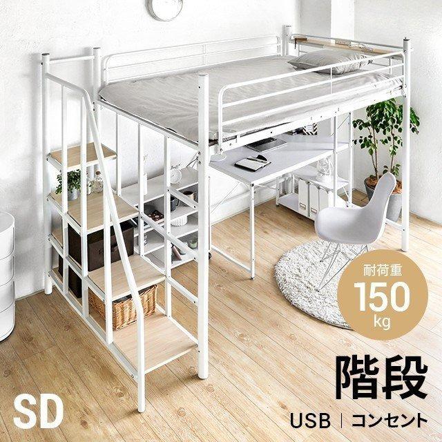 ロフトベッド セミダブル パイプベッド 階段 耐荷重150kg 前階段付き