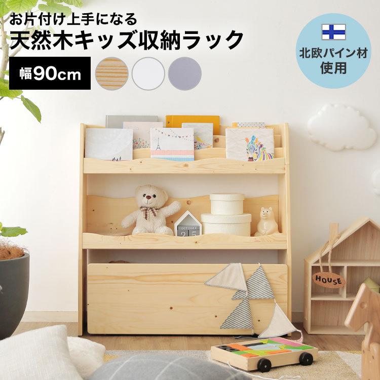 絵本棚 おもちゃ収納 おしゃれ おもちゃ箱 本棚付き 無垢材 棚 子供