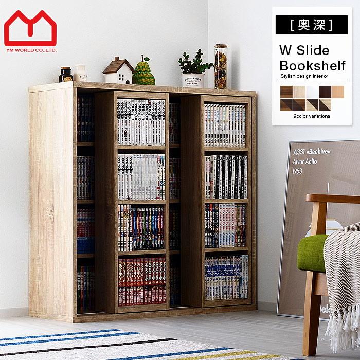 本棚 書棚 スライド コミック おしゃれ 大容量 大量 スライド本棚 幅