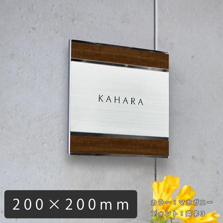 送料込み ステンレス 表札 おしゃれ サイン 正方形 木目調 ウッド調 筆