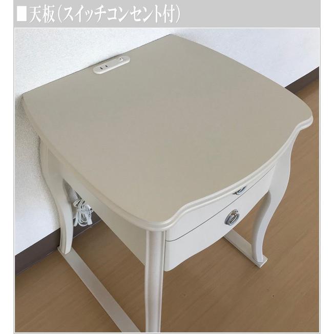 大流行中 定番人気 高品質 ナイトテーブル ホワイト コンセント付