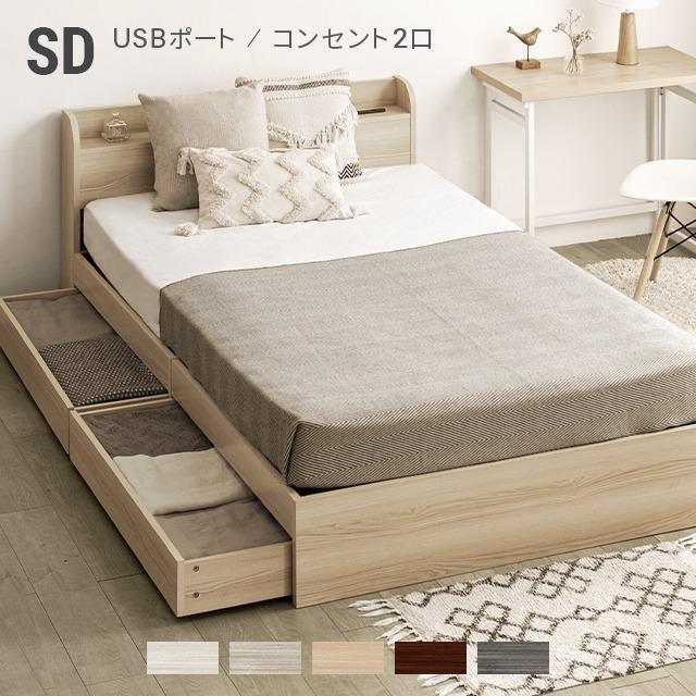 ベッド ベッドフレーム セミダブル コンセント付き Usbポート付き 収納