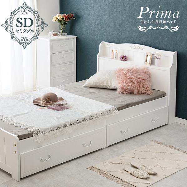 ベッド セミダブル 可愛い かわいい 白 収納 引出し 引き出し 姫系