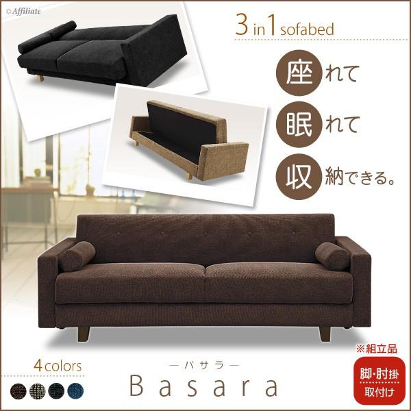 ソファベッド ソファーベッド ソファ 3人掛け 幅197cm 布張 座面下収納
