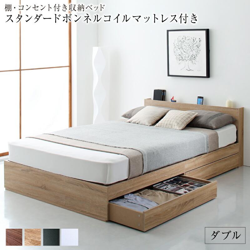 ダブルベッド 安い マットレス付き 収納付き ベッド ダブル マットレス