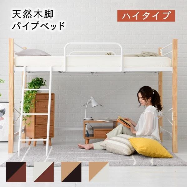 シングルベッド ハイタイプ 高さ 60 木製 支柱 パイプベッド 天然木