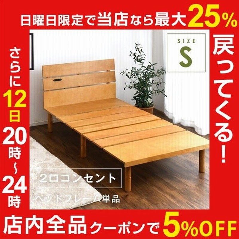 ベッド すのこ シングル ベッドフレーム コンセント付 すのこベッド