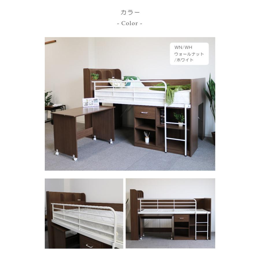無駄ゼロ収納 階段ロフトベッド ハイタイプ シンプル シングル の