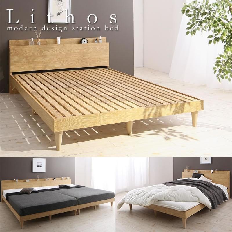 北欧モダンデザイン 棚 コンセント付きデザインすのこベッド