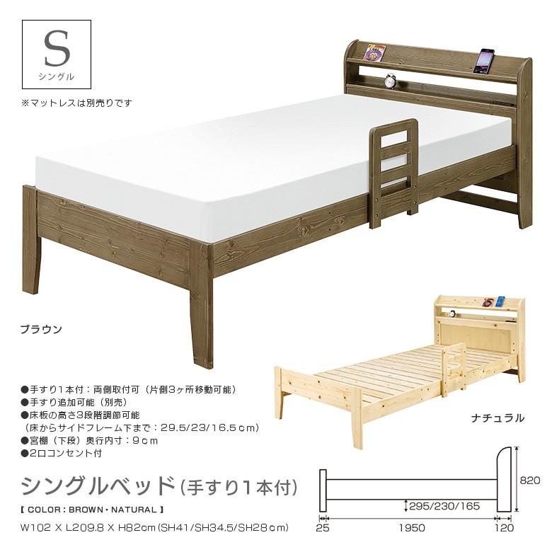 シングルベッド 新居 すのこベッド 天然木製 3段階高さ調節可能