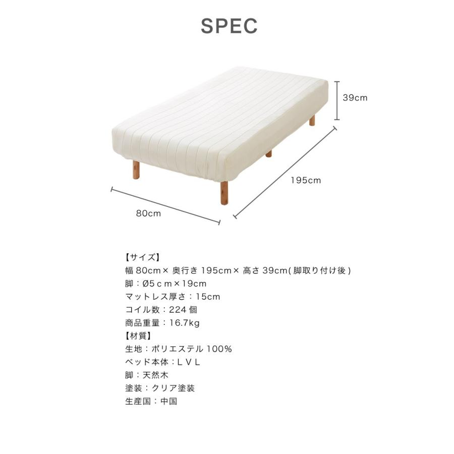 セミシングル 脚15cm ボンネルコイルマットレス ベーシック 脚付き