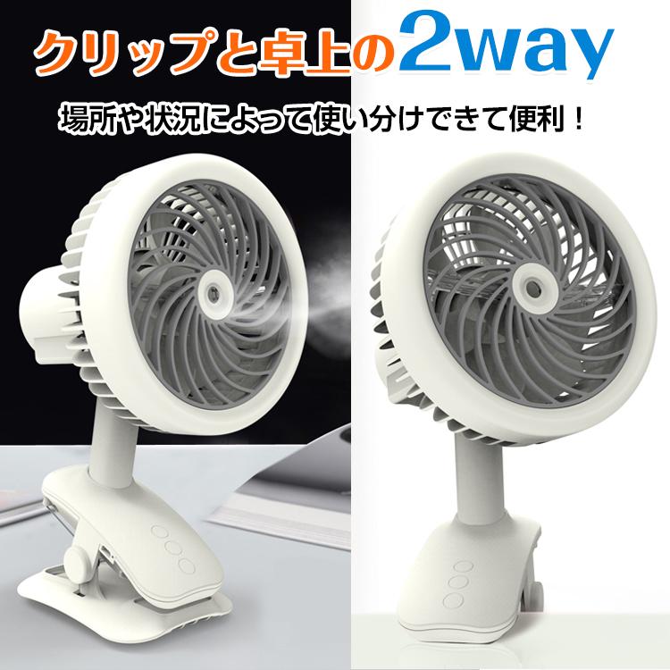 Usb 卓上扇風機 クリップ 静音 加湿 冷風 噴霧 充電 3段階 軽量 涼しい