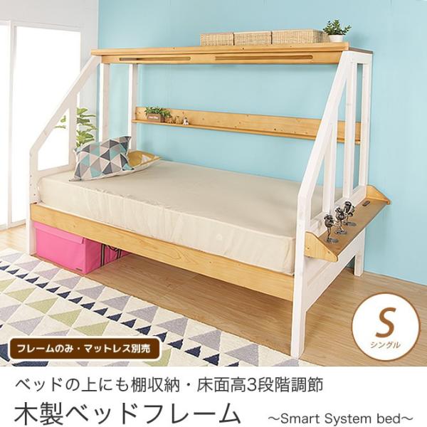 頑丈 分割 子供 薄型 木製 入学祝 ベット ベッド 棚付き スノコ 子供