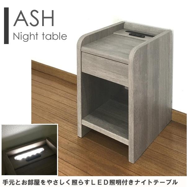 ナイトテーブル おしゃれ Led 照明 幅30cm コンセント付き 引き出し
