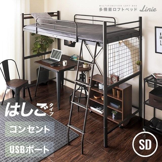 ロフトベッド 2段ベッド はしご付き パイプ パイプベッド セミダブル
