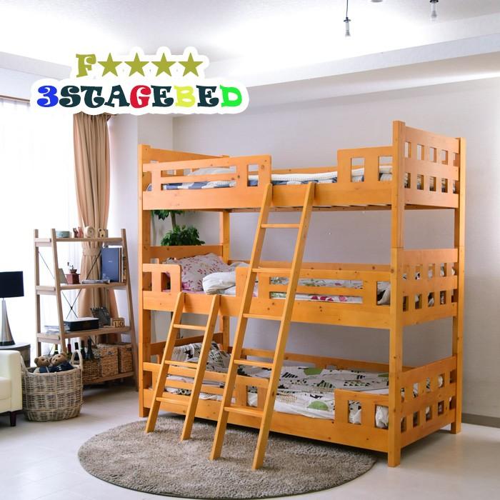 3段ベッド 三段ベッド 親子ベッド 木製 無垢 子供から大人まで 3人用