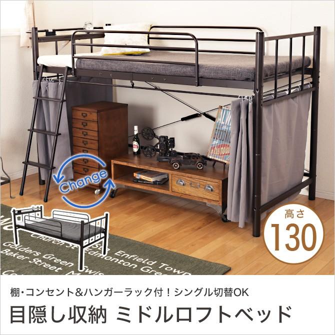 楽天市場 ロフトベッド ミドル 高さ176 5cm ロフトベット パイプ