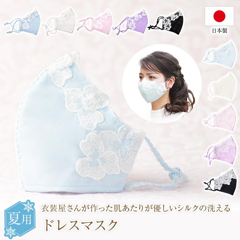 夏用 レースマスク シルク おしゃれマスク ドレスマスク 日本製