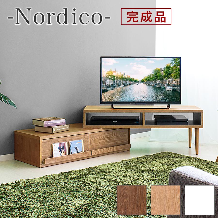 テレビ台 伸縮 完成品 白 ローボード 北欧 いっぱい 木製 ダンボール