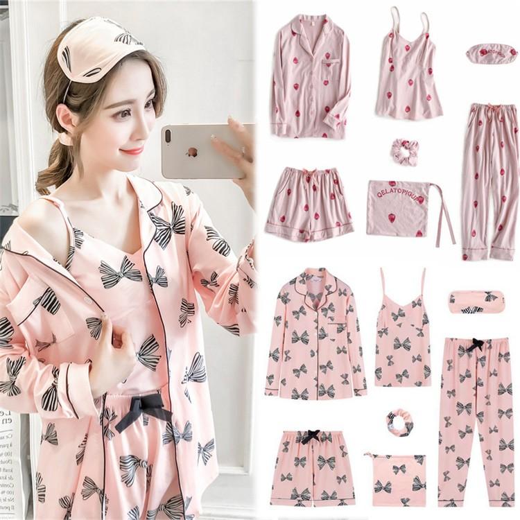 7点パジャマ ルームウェア 綿 レディース 春夏秋冬 前開き いちご柄