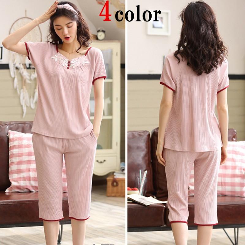レディース パジャマ 100 綿 新作 V襟 30代 40代 50代 夏 女性 半袖