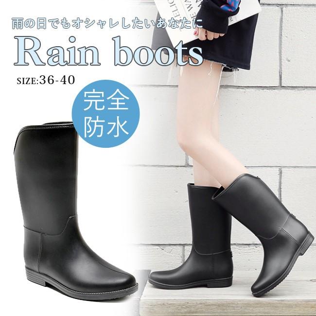 年中セール レインブーツ レディース ミドル丈 軽量 ローヒール 大きい