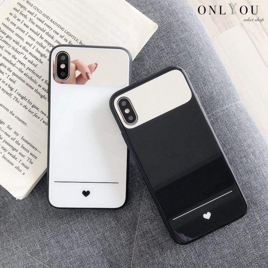 Iphonese2 ケース 韓国 ハート ミニハート モノクロ ミラー 鏡
